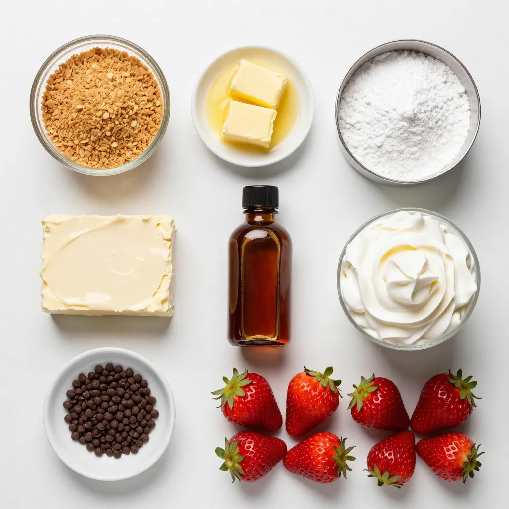 To make Santa Hat Cheesecake Bites, you need simple yet tasty ingredients. Here’s what you will need:
