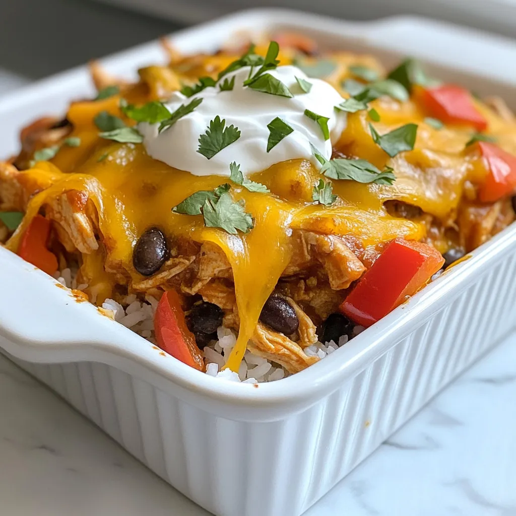 This casserole is great on its own. But you can add sides for a full meal. Serve it with a fresh salad or some tortilla chips. Guacamole and salsa bring a fresh taste too. For a creamy touch, offer sour cream or Greek yogurt. Don’t forget to garnish with cilantro for color and flavor!