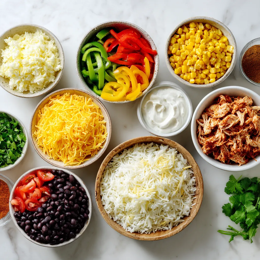 A delicious and hearty casserole featuring shredded chicken, bell peppers, and spices, topped with melted cheese.