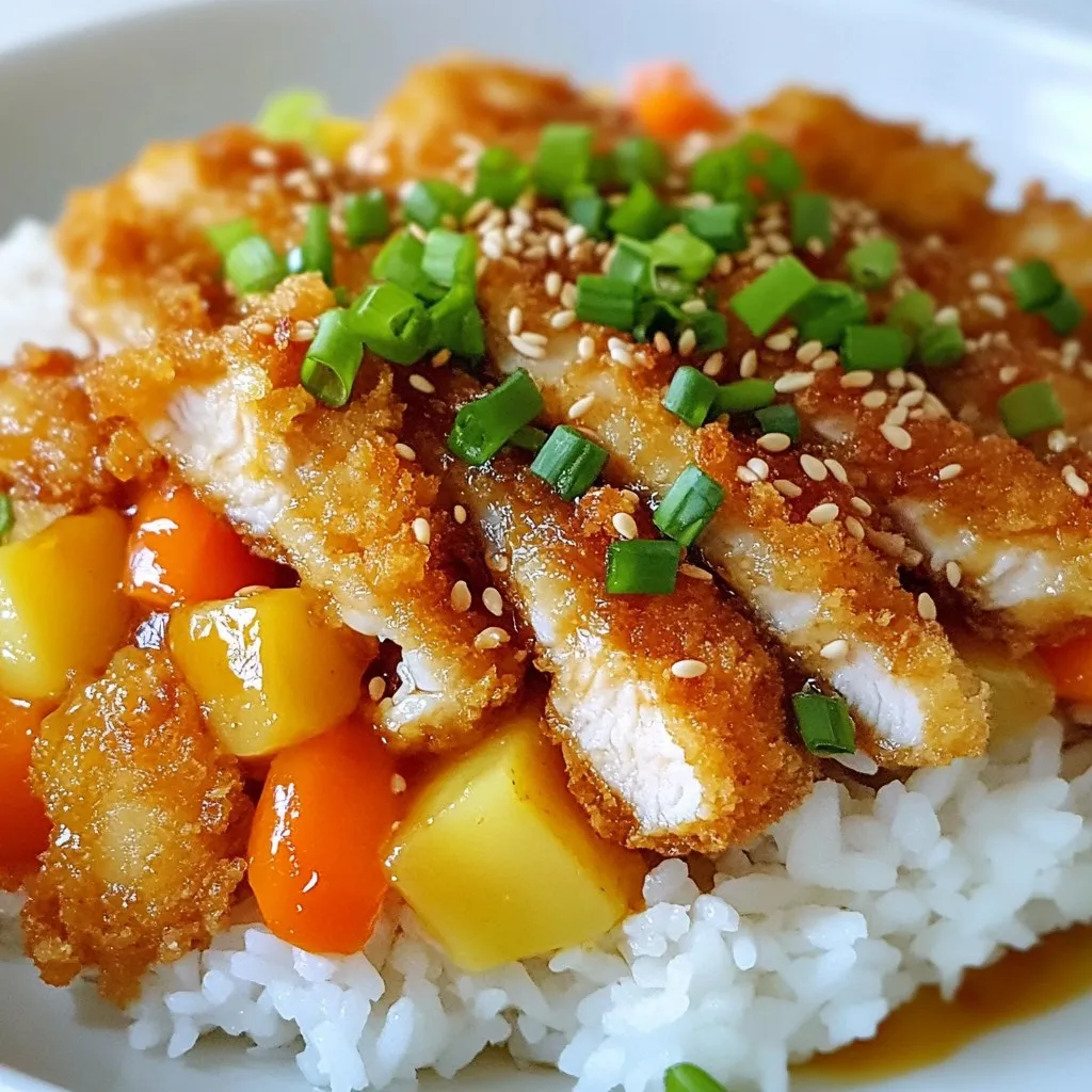 A delicious Japanese-inspired dish featuring crispy chicken katsu served with a flavorful curry sauce and vegetables.