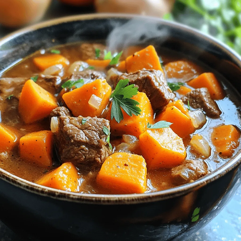 This stew is not just tasty; it’s good for you too! Each serving has about 300 calories. It has protein from the beef, fiber from the sweet potatoes and carrots, and vitamins from the veggies. The healthy fats in olive oil help your body absorb nutrients. It’s a balanced meal that warms you up and fills you up.