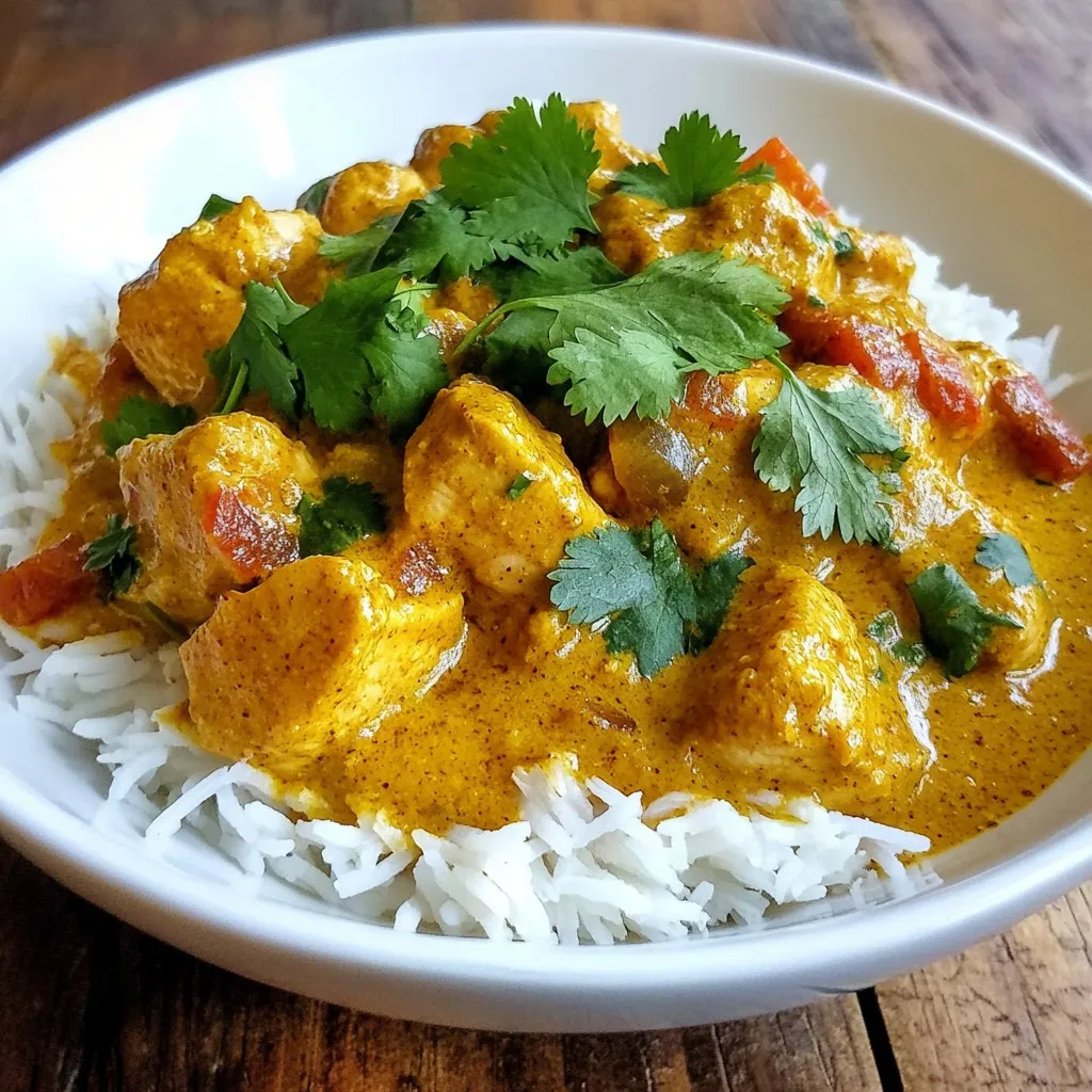 A rich and creamy chicken korma made in a slow cooker, infused with aromatic spices.
