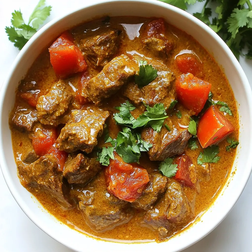 - 2 lbs beef chuck, cut into 1-inch cubes - 1 large onion, finely chopped - 3 cloves garlic, minced - 1 tablespoon ginger, grated - 1 can (14 oz) diced tomatoes - 1 cup coconut milk - 2 tablespoons curry powder - 1 tablespoon garam masala - 1 teaspoon turmeric - 1 teaspoon cumin - 1 teaspoon coriander - 1/2 teaspoon chili powder (adjust to taste) - Salt and pepper to taste - 2 tablespoons vegetable oil - Fresh cilantro for garnish The main star of this dish is the beef chuck. It’s tender and full of flavor. When you cut it into 1-inch cubes, it cooks evenly. The next key players are the onion, garlic, and ginger. They add depth and warmth to the dish. Spices are crucial in Indian cooking. Curry powder, garam masala, turmeric, cumin, and coriander bring the dish to life. Each spice adds its unique taste and aroma, creating a rich profile. For liquid, diced tomatoes and coconut milk work wonders. They make the curry creamy and help meld the spices. The coconut milk adds sweetness, balancing the heat from the chili powder. Don't forget salt and pepper. They enhance all the flavors. Lastly, fresh cilantro adds a pop of color and freshness when you serve the curry. {{ingredient_image_1}} 1. Sautéing onions and aromatics Start with a large skillet. Heat the vegetable oil on medium-high. Add the finely chopped onion. Cook it for about 5 minutes until it turns soft and clear. This brings out the sweet flavor. Next, stir in the minced garlic and grated ginger. Cook them for 1-2 minutes. You want to smell that nice aroma. 2. Browning the beef Now, add the beef cubes to the skillet. Brown them on all sides, which takes about 5-7 minutes. This step adds a great depth of flavor. Season the beef with salt and pepper while it cooks. Make sure to get a nice color on the meat. 3. Combining ingredients in the slow cooker Once the beef is browned, transfer it to the slow cooker. Add in the sautéed onions, garlic, and ginger. Pour in the can of diced tomatoes and the cup of coconut milk. Sprinkle the curry powder, garam masala, turmeric, cumin, coriander, and chili powder on top. Stir everything well to mix the spices with the meat. 4. Cooking time and temperature settings Cover the slow cooker with its lid. You can set it to cook on low for 7-8 hours. If you are short on time, set it to high for 4-5 hours. Check that the beef is tender when it's done. The longer it cooks, the better the flavors blend. Don’t forget to taste and adjust the seasoning before serving! - Adjusting spice levels: To make your curry spicier, add more chili powder. For a milder dish, reduce the chili powder. Always taste as you go. - Thickening the curry: If you want a thicker curry, mash some beef pieces with a fork. You can also add a little cornstarch mixed with water. - Tasting and seasoning adjustments: Always taste your curry before serving. Add more salt or spices if needed. A squeeze of lime can brighten flavors too. - Best sides to pair with curry: Serve your curry with warm naan bread or fluffy basmati rice. Both soak up the sauce well and enhance the meal. - Garnishing ideas: Top your curry with fresh cilantro for color and flavor. Lime wedges on the side add a zesty touch. Pro Tips Choose the Right Cut: For the best flavor and tenderness, use beef chuck or brisket, as they become more flavorful and tender when slow-cooked. Enhance the Flavor: Consider adding a splash of lime juice or a tablespoon of tamarind paste for an extra layer of tangy flavor to your curry. Let It Rest: After cooking, allow the curry to rest for about 10-15 minutes before serving. This helps the flavors to settle and intensify. Make it Your Own: Feel free to customize the spice levels by adjusting the chili powder or by adding other spices like cinnamon or cardamom for a unique twist. {{image_2}} You can switch the beef for other proteins. Chicken works great, too. Lamb adds a rich flavor, while chickpeas or lentils serve as good vegetarian options. Each choice brings its own taste and texture. Feel free to mix in different veggies. Carrots, peas, or bell peppers all add color and crunch. These veggies can make the dish more nutritious and fun to eat. If you seek non-dairy options, use almond or soy milk instead of coconut milk. This change still keeps the dish creamy and delicious. Always check for dietary needs, too. Gluten-free eaters can enjoy this curry without worry. To add more depth, you can include extra spices. Try cardamom or cinnamon for a warm, sweet aroma. A bay leaf or two can also enhance the overall flavor. Experimenting with sauces can change the profile of your curry. A splash of soy sauce or Worcestershire sauce can add umami. For a tangy twist, a tablespoon of lime or lemon juice works wonders. Feel free to play around until you find your perfect blend! To store your Slow Cooker Indian Beef Curry, let it cool first. Place it in an airtight container. This keeps it fresh longer. If you want to freeze it, use freezer-safe bags. Squeeze out the air to avoid freezer burn. For reheating, you can use the microwave or stovetop. If using the microwave, heat it in short bursts. Stir in between to heat evenly. On the stovetop, warm it over low heat. Add a splash of water or coconut milk if it seems too thick. Your curry lasts about 3 to 4 days in the fridge. Make sure to check for any signs of spoilage before eating. In the freezer, it can last up to 3 months. This makes it perfect for meal prep or busy days when you want a quick meal. Just remember to label your containers with dates for easy tracking! How long can I cook it in the slow cooker? You can cook your curry in the slow cooker for 7-8 hours on low. If you are in a hurry, you can cook it for 4-5 hours on high. The beef must be tender. Can I use frozen beef? Yes, you can use frozen beef. Just remember to thaw it before cooking. This helps with even cooking and flavor. Is this recipe spicy? This recipe can be adjusted for spice. The chili powder adds heat. You can add more 