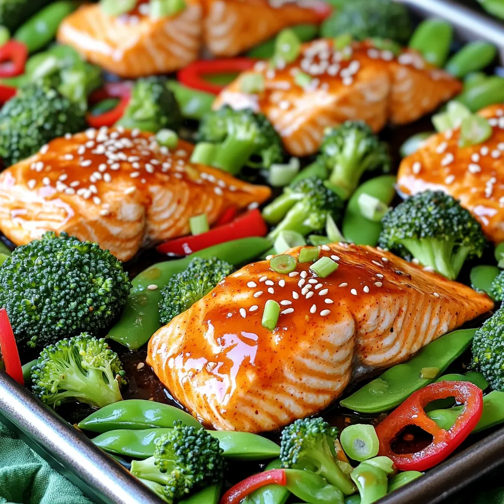 Start by gathering your ingredients. You need fresh salmon, colorful veggies, and the sweet chili sauce. Preheat your oven to 400°F (200°C). This helps cook everything evenly. Line a large sheet pan with parchment paper. This will make cleanup a breeze.