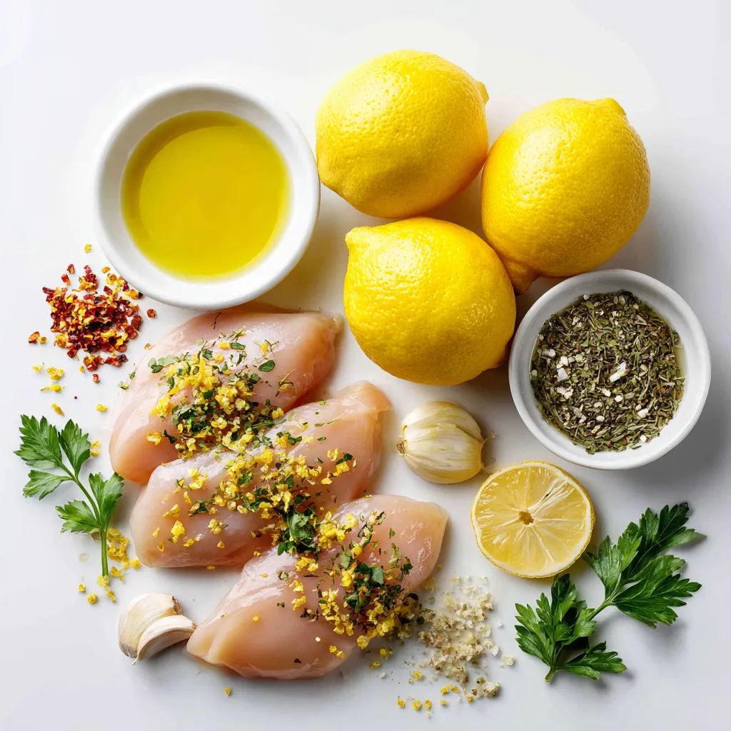 The main ingredients in this recipe are simple but key. Chicken breasts serve as the star. The lemons give it a bright taste. Garlic adds depth, while olive oil keeps it moist. The flavor comes alive with oregano and thyme. Red pepper flakes can add a kick, but they are not a must. Salt and pepper round it all out.