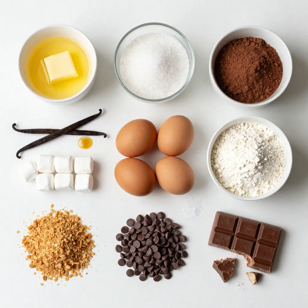 For these S’mores Brownie Bars, you will need simple ingredients. Each one plays an important role in flavor and texture. Here’s what you need: