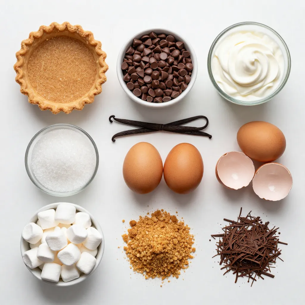 Each ingredient plays a key role. The graham cracker crust gives a nice crunch. The milk chocolate chips melt to create a rich filling. Heavy cream adds smoothness. Granulated sugar sweetens the pie just right. Eggs help set the filling as it bakes. Vanilla extract gives a warm flavor. Mini marshmallows add a fun gooey top. Crushed graham crackers and chocolate shavings make the pie look pretty.