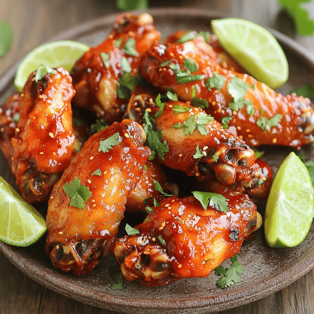 Each ingredient adds its own flair. The chicken wings serve as the canvas, absorbing all the flavors. Sriracha sauce brings heat, while honey adds sweetness. Olive oil ensures moisture and helps with crispiness. Lime juice and zest brighten the dish, and garlic adds depth. Ground cumin gives a warm note, while salt and pepper enhance the overall taste. For garnishing, cilantro adds freshness, and lime wedges offer a tangy kick when served.