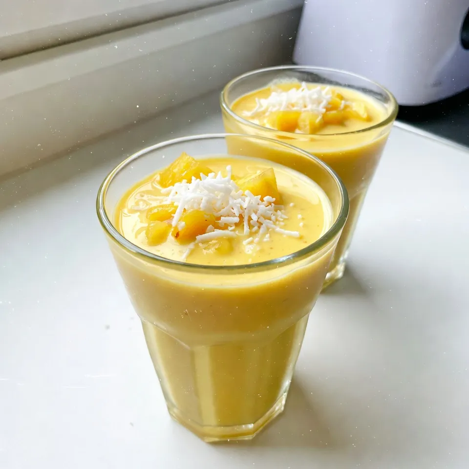 A refreshing and creamy smoothie made with fresh pineapple, banana, and coconut milk, perfect for a tropical treat.