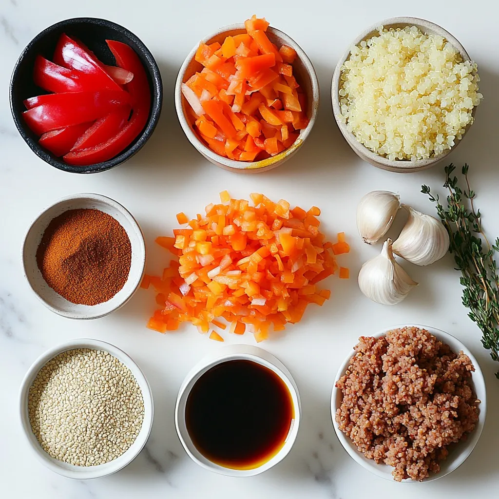 • In a large mixing bowl, combine the Impossible Burger, cooked quinoa, chopped onion, bell pepper, minced garlic, grated carrots, and the flax egg mixture.
